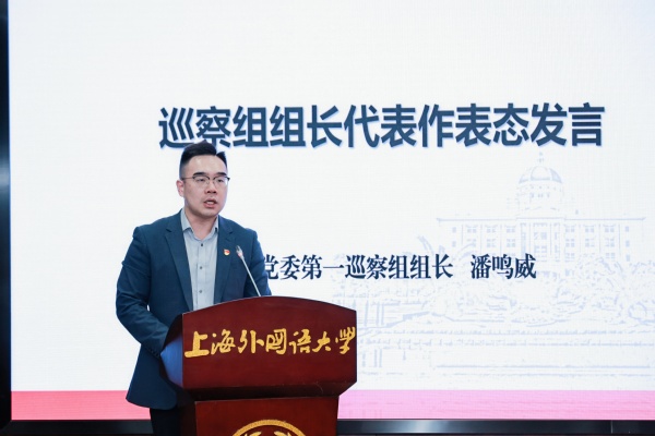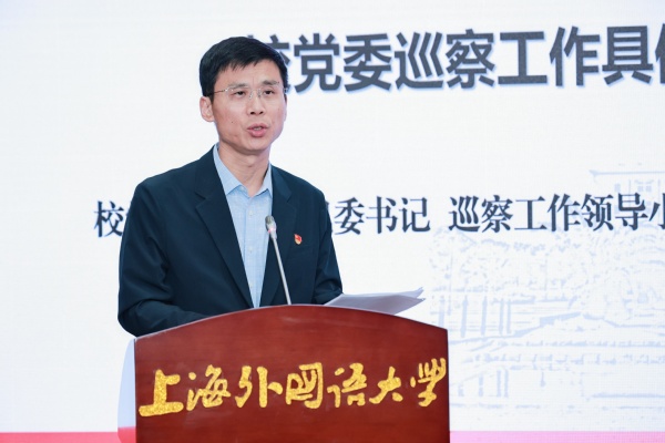 吴利瑞宣读《中共上海外国语大学委员会关于2025年下半年巡察巡察组授权任职及任务分工的决定》,通报表彰2025年上半年参加校党委巡察工作表现优秀干部,并作具体工作要求。